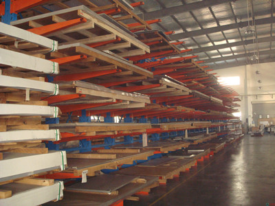 悬臂式货架主要用于存放长形物料,如型材、管材、板材、线缆等,立柱多采用H型钢或冷轧型钢,悬臂采用方管、冷轧型钢或H型钢,悬臂与立柱间采用插接式或螺栓连接式,底座与立柱间采用螺栓连接式,悬臂层高可调。货物存取由叉车、行车或人工进行。货架高度通常在2.5米以内(如由叉车存取货则可高达6米),悬臂长度在1.5米以内,每臂载重通常在500kg以内。此类货架多用于机械制造行业和建材超市等。